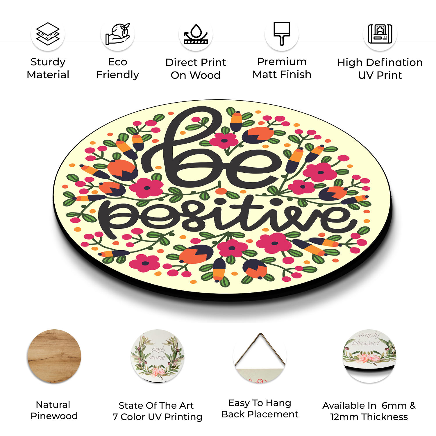 Embrace the power of positivity and optimism with our "Be Positive" Wood Print Colorful Wall or Door Hanging. Let it be a constant reminder to choose positivity, cultivate gratitude, and embrace a sunny outlook on life.