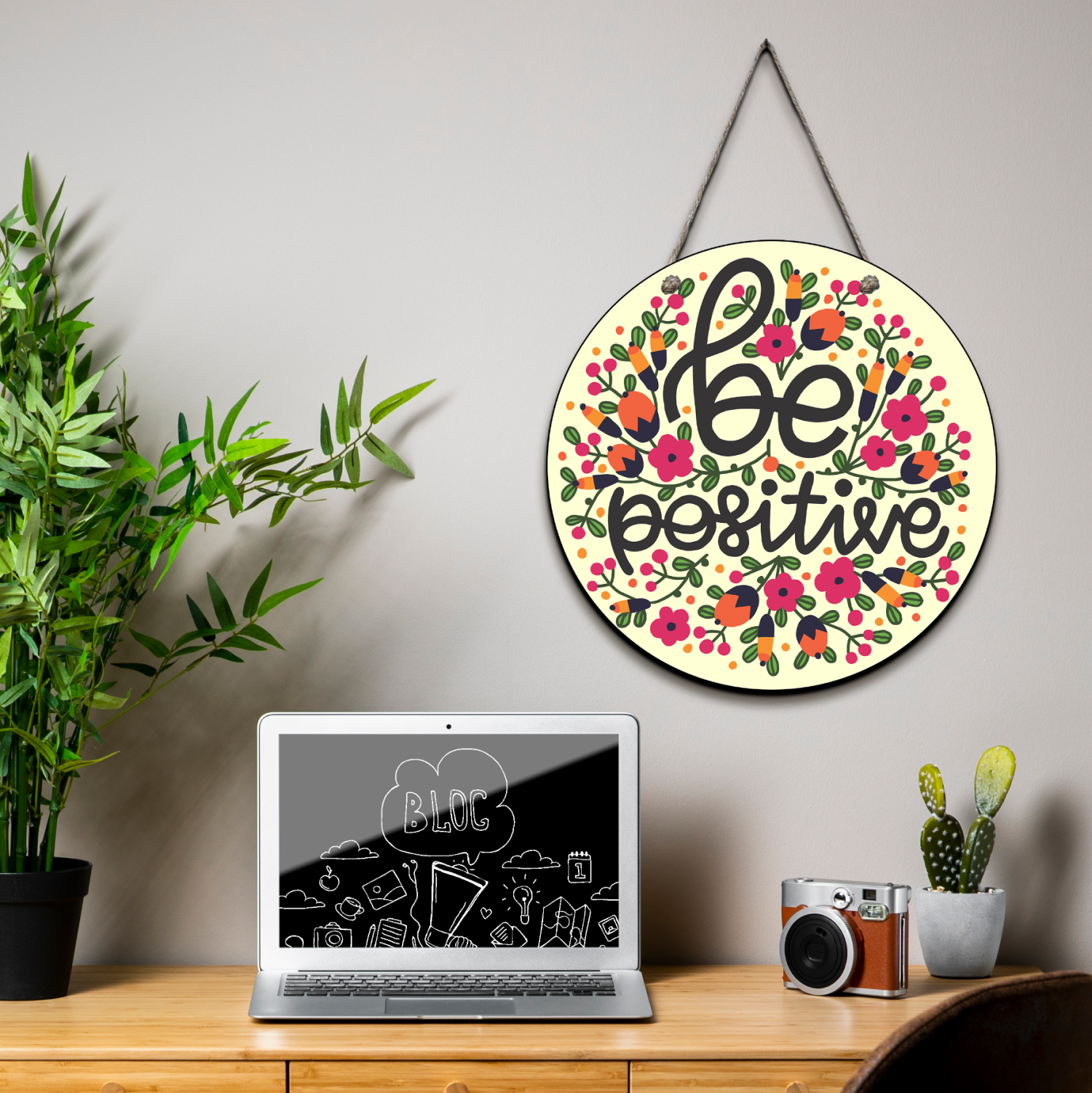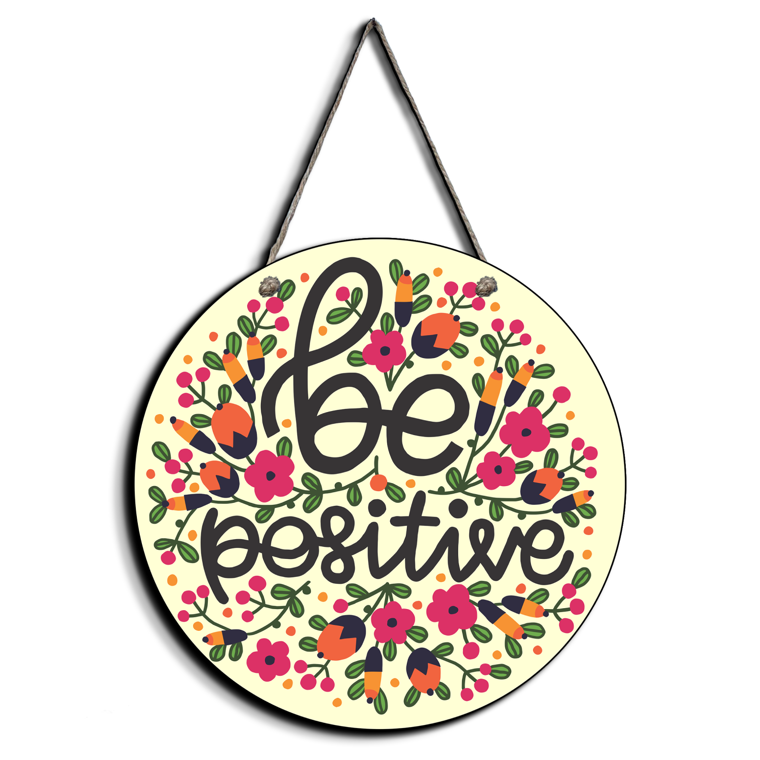 "Be Positive" Wood Print Colorful Wall or Door Hanging, a cheerful piece that spreads positivity and encourages a positive mindset.