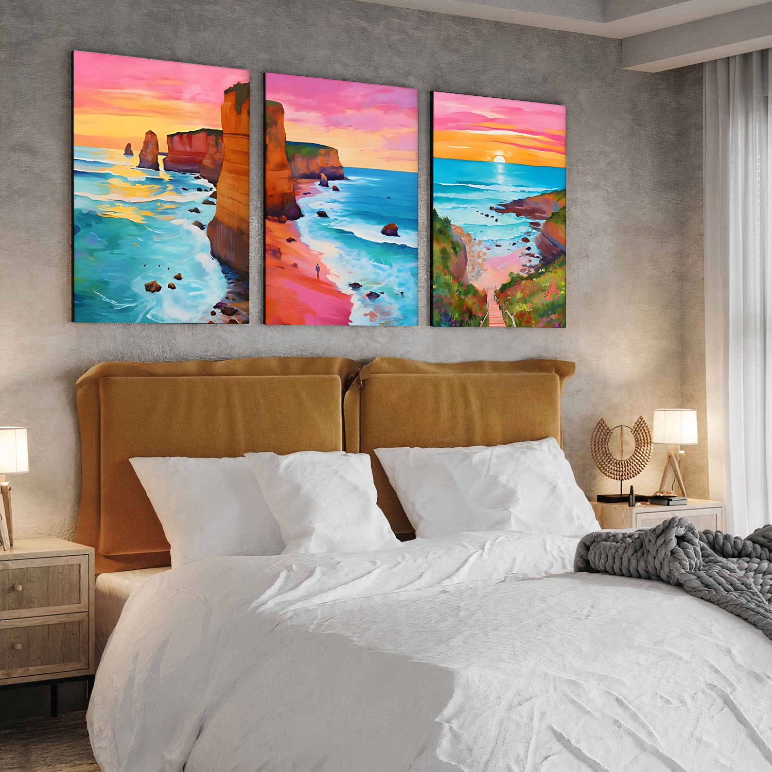 With three different prints included in this set, you can easily create an eye-catching focal point on any wall. Whether displayed together or scattered throughout your living space, these prints will add depth and dimension to any room. The lightweight design makes hanging a breeze while also providing an elegant touch that complements any interior style.