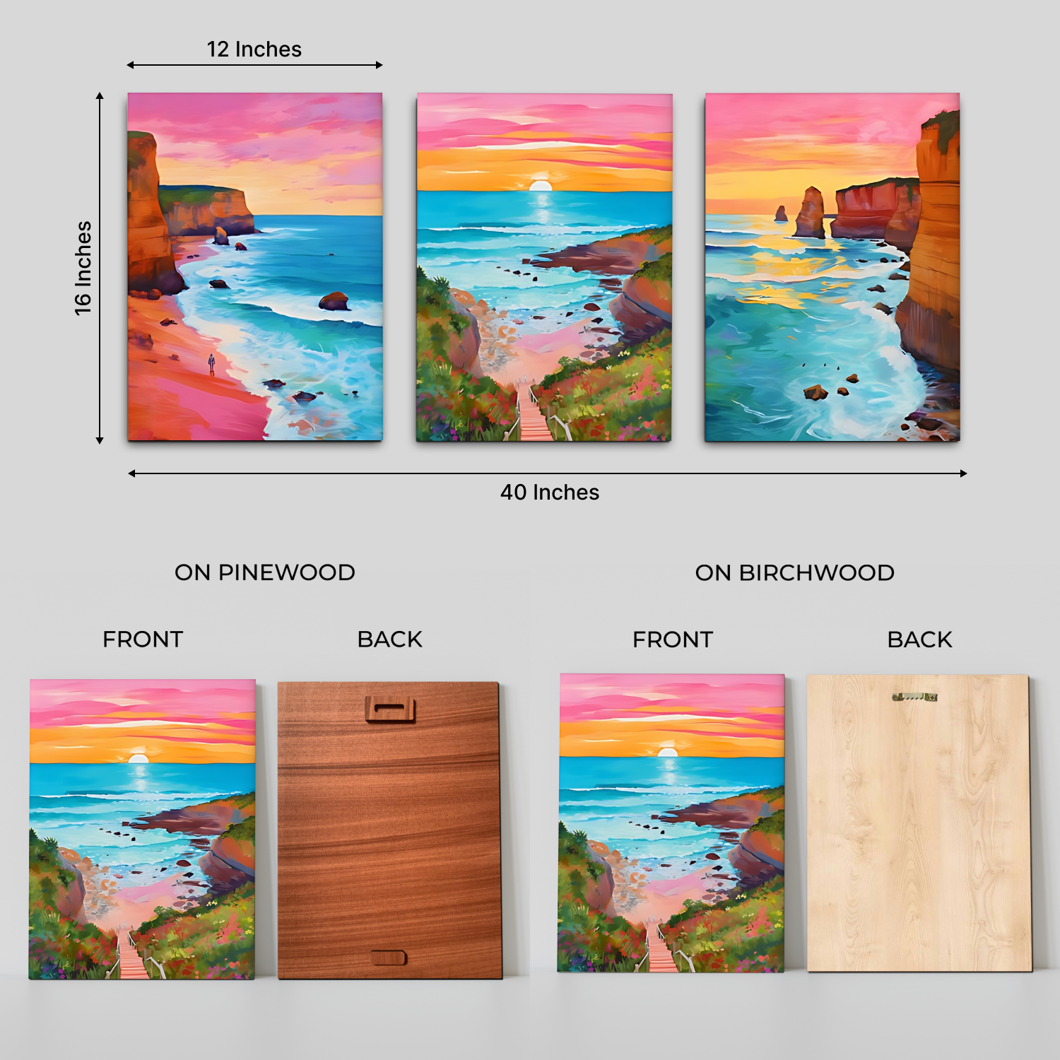 Available in 5 Different Size Options: This Ocean Odyssey Gallery Wood Print Wall Art Set of 3 is available in different size options to suit your preferences and the dimensions of your wall. Whether you prefer a smaller accent piece or a larger focal point, you can select the size that best fits your space.