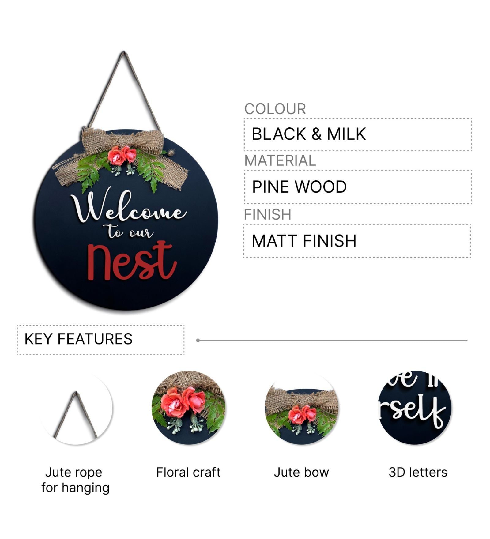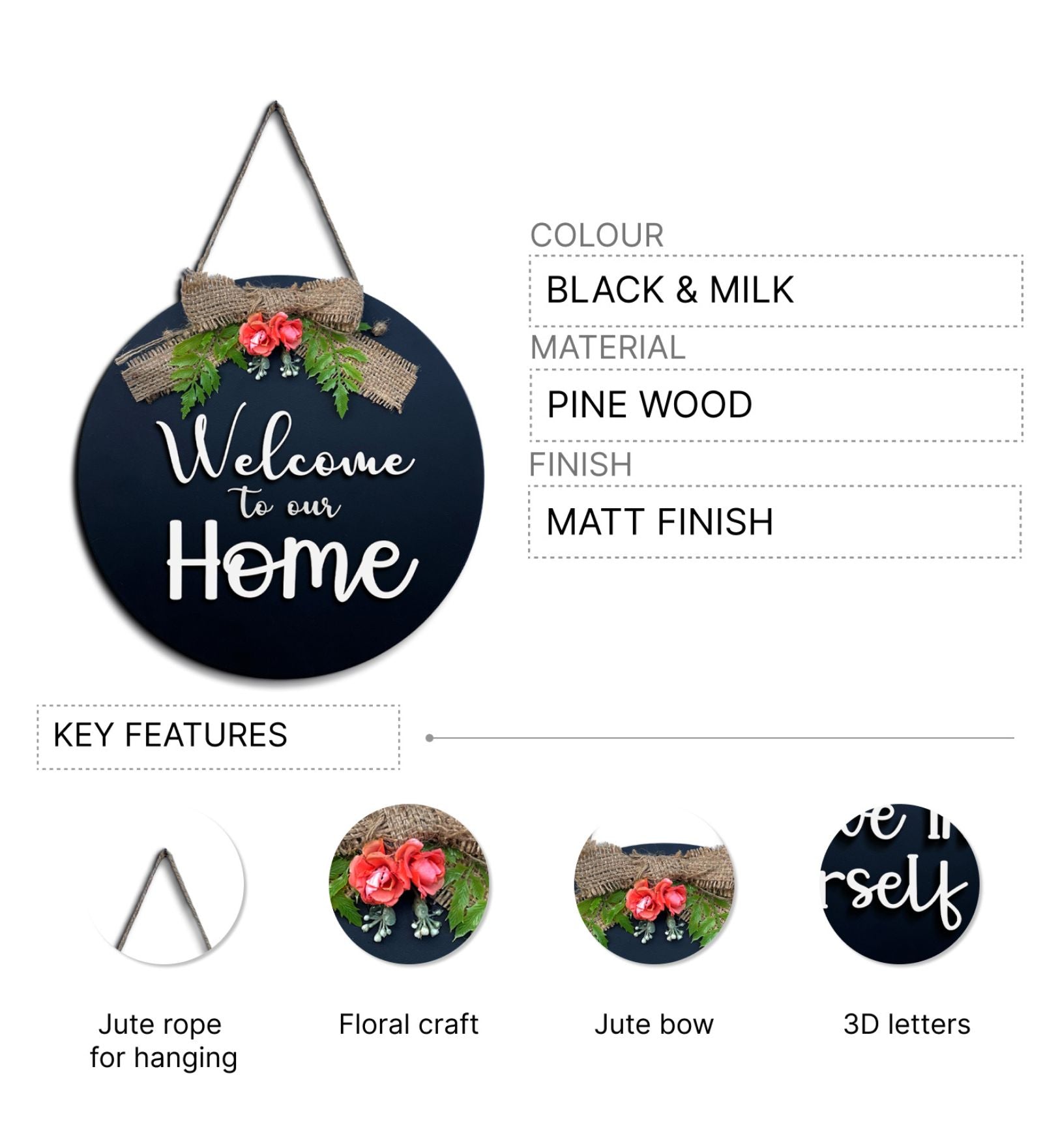 3D Buffalo Print Wooden Welcome Hanging Home Décor 12 Inches